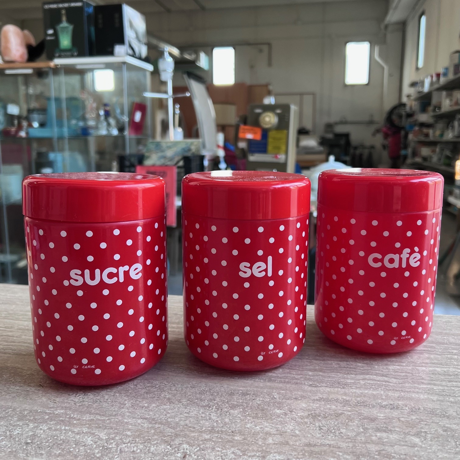 Barattoli cucina vintage, made in Italy, scritte in 3 lingue diverse (italiano, inglese, francese).